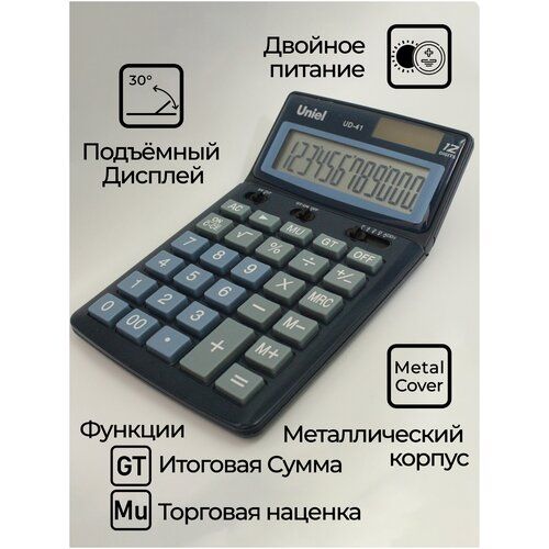 Найти - Настольный калькулятор с двойным питанием, металл Uniel UD-41SB Голубой