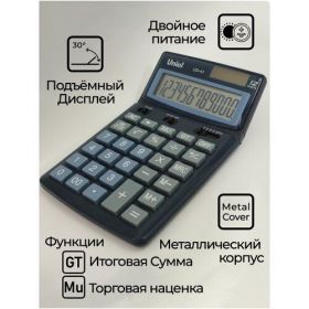 12 разрядный, двойное питание, функция "Итоговая сумма", функция "Торговая наценка", подъемный дисплей, металлическая поверхность, размер: 173х106х26мм