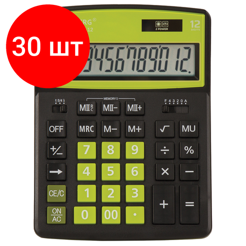 Внимание[Калькулятор настольный BRAUBERG EXTRA COLOR-12-BKLG (206x155 мм), 12 разрядов, двойное питание, черно-салатовый, 250477] X 30 шт.