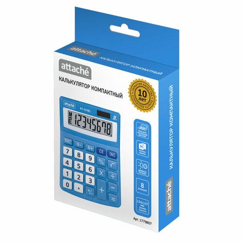 Калькулятор Attache настольный AС-223BL компактного размера с 8-разрядным ЖК-дисплеем.