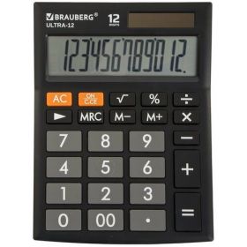 Найти - Калькулятор настольный BRAUBERG ULTRA-12-BK (192x143 мм), 12 разрядов, двойное питание, черный, 250491
