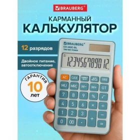 Найти - Калькулятор карманный BRAUBERG CX-102C-BL (76x126 мм), 12 разрядов, двойное питание, голубой, 272649