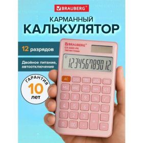 Найти - Калькулятор карманный BRAUBERG CX-102C-PK (76x126 мм), 12 разрядов, двойное питание, розовый, 272650