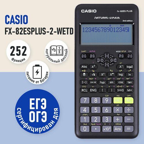 Найти - Калькулятор инженерный непрограммируемый научный для ЕГЭ Casio Fx-82esplus-2-wetd (162х80 мм), 252 функции, батарея