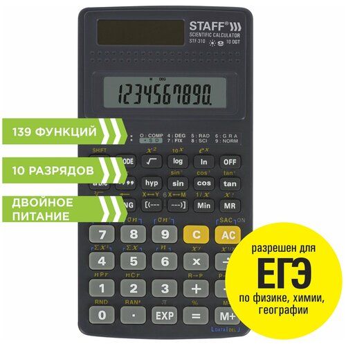 Калькулятор инженерный непрограммируемый научный Brauberg Sc-850 (163х82 мм), 240 функций, 10+2 разрядов, двойное питание, черный, 250525 101265067457