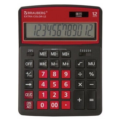Калькулятор бухгалтерский BRAUBERG Extra Color-12, черно-малиновый 997275794