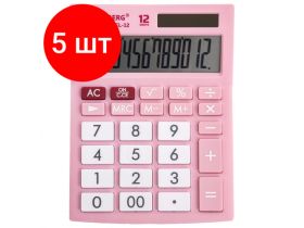 Комплект 5 шт, Калькулятор настольный BRAUBERG ULTRA PASTEL-12-PK (192x143 мм), 12 разрядов, двойное питание, розовый, 250503 102569059137