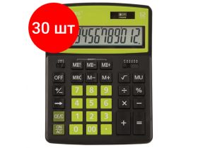 Комплект 30 шт, Калькулятор настольный BRAUBERG EXTRA COLOR-12-BKLG (206x155 мм), 12 разрядов, двойное питание, черно-салатовый, 250477 101920330477