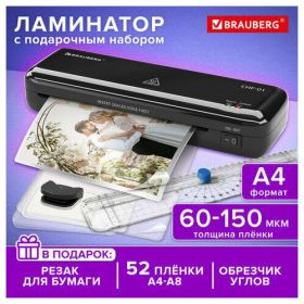 Найти - Ламинатор BRAUBERG CHF-01 А4, 60-150 мкм, 25 см/мин, с подарочным набором для ламинирования: резак, обрезчик углов, пленка 52 шт, 532861