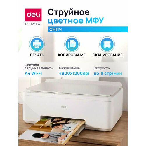 МФУ Deli D511W-EA1 (струйное цветное А4, 15 стр/мин, 4800x1200 dpi, USB, WiFi) 128950531