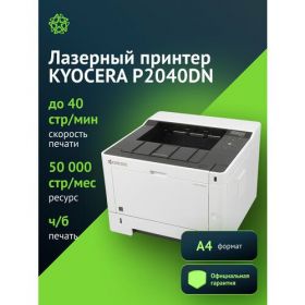 Принтер лазерный Kyocera Ecosys P2040DN - это высококачественное устройство для черно-белой печати формата A4. Он обеспечивает скорость ч/б печати до 40 страниц в минуту, что делает его отличным выбором для больших объемов печати.