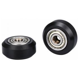 Колесо в сборе для использования на алюминиевом профиле 20-й серии. Включает в себя колесо из износостойкого материала делрина (POM), латунную шайбу, два подшипника 625ZZ. Используется при построении бюджетных 3D принтеров, лазерных ЧПУ станков и т. п. Такие колеса ставятся на все Ender -подобные 3D принтеры. Не смотря на дешевизну решения, они дают отличную точность позиционирования и не требуют постоянного ухода.