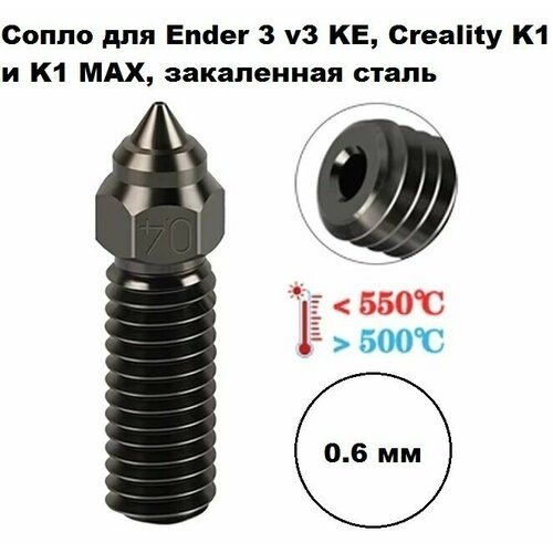 Найти - Сопло 0,6 мм Ender 3 v3 KE, Creality K1 и K1 MAX, закаленная сталь. Сопло из закаленной стали, с резьбой M6.