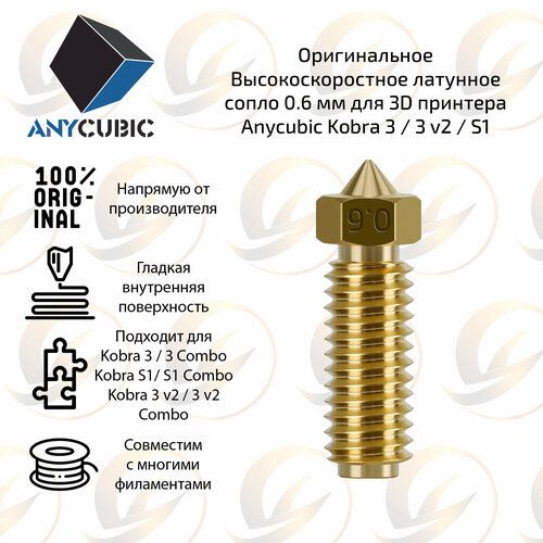 Латунное сопло 0,6 мм для 3D-принтера Anycubic Kobra 3 — это высококачественное сопло, разработанное специально для использования с 3D-принтерами Anycubic Kobra 3. Оно изготовлено из латуни, что обеспечивает ему высокую прочность и долговечность.