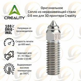 Найти - Оригинальное сопло 0.6 мм из нержавеющей стали для 3D принтера Creality K1 / K1 Max / Ender-3 V3 KE