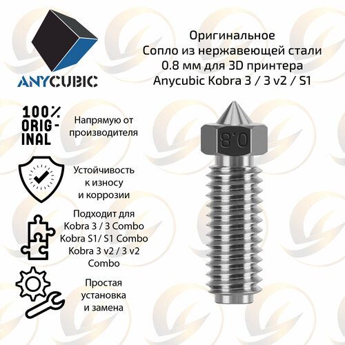 Сопло из нержавеющей стали для 3D-принтера Anycubic Kobra 3 — это высококачественное сопло, разработанное специально для использования с 3D-принтерами Anycubic Kobra 3.