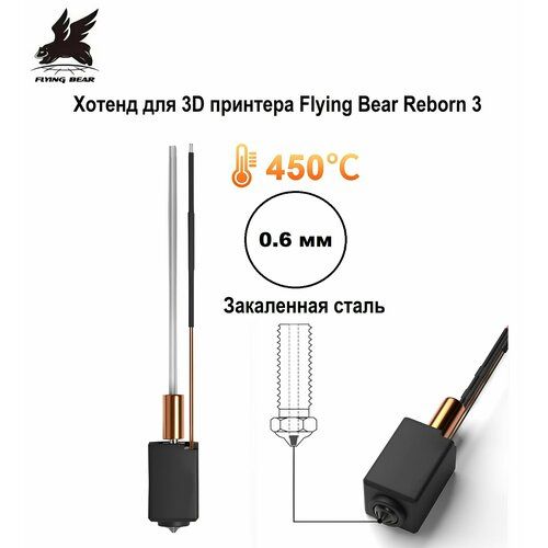Найти - Хотенд для 3D принтера Flying Bear Reborn 3, сопло 0.6 мм из закаленной стали. Hotend для Flying Bear Reborn 3.