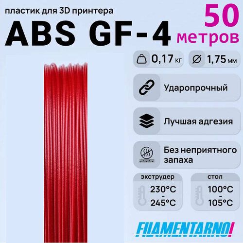 Найти - ABS GF-4 рубиновый моток 50 м, 1,75 мм, пластик Filamentarno для 3D-принтера