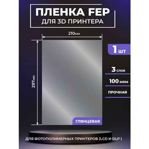 Найти - FEP пленка LuxCase для 3D принтера, прозрачная ФЕП пленка для 3Д принтера, 100 мкм, 297x210 мм, 1 шт.