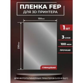Найти - FEP пленка для 3D принтера, прозрачная ФЕП пленка для 3Д принтера, 100 мкм, 230х150мм, 1 шт.