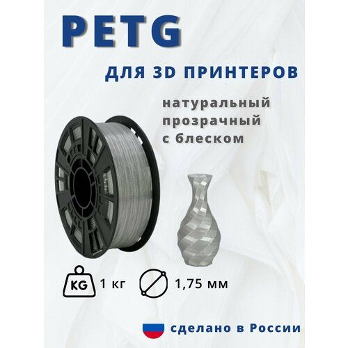 Найти - Пластик для 3д печати НИТ, Petg натуральный прозрачный с блеском (0025) 1кг