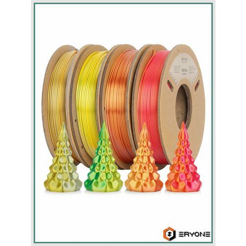 Набор из 4 катушек 0.25 кг пластика PLA Silk Dual Color 1,75 мм (Eryone) разных цветов - представляет собой высококачественный набор пластика для 3D печати, разработанный компанией Eryone. Этот набор сочетает в себе прекрасное качество и расширенную цветовую гамму, что делает его идеальным выбором для профессиональных и опытных пользователей 3D принтеров.
