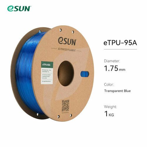 Найти - Филамент eSUN гибкий TPU-95A 1.75мм, синий прозрачный 1 кг.