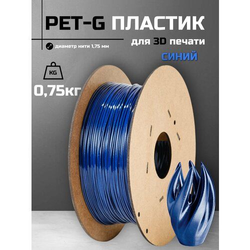 Пластик для 3D печати PETG 1.75 "синий" 0.75 кг - идеальный выбор для вашего 3D-принтера.