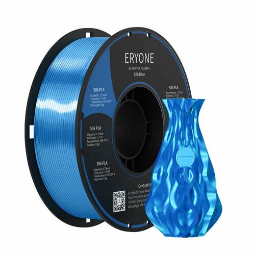 PLA пластик Eryone Silk Синий 1,75 мм 1 кг - высококачественный расходный материал для 3D-принтеров, произведенный из биоразлагаемого полимера. Этот пластик обеспечивает прочность и долговечность готовых изделий, делая его отличным выбором для печати различных объектов.