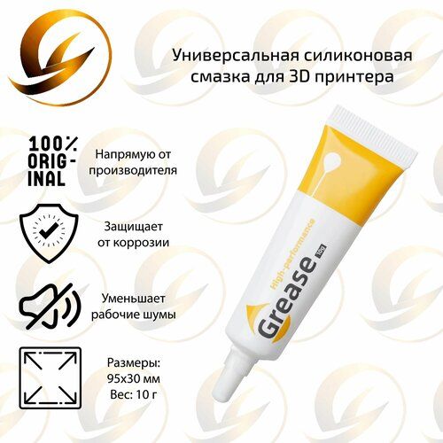 Универсальная силиконовая смазка — это надежное средство для ухода за подвижными частями 3D принтера. Она эффективно снижает трение, предотвращает износ деталей и обеспечивает плавную и бесшумную работу направляющих, винтов и подшипников. Смазка устойчива к высоким температурам, что делает её идеальной для использования в условиях интенсивной работы принтера. Благодаря удобному формату упаковки её легко наносить, что упрощает обслуживание оборудования. Универсальная формула подходит для большинства 3D принтеров и другого оборудования с подвижными механизмами.