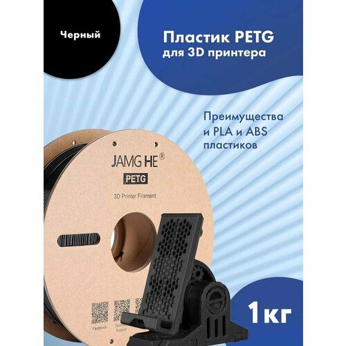 Найти - Пластик 1.75 мм для 3D печати Jamg He PETG для 3d принтеров Anycubic, Bambulab, Raise, Elegoo, Creality, Qidi, Flyingbear, 1 кг. Черный