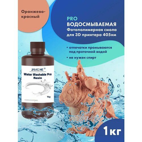 Найти - Водосмываемая фотополимерная смола JAMG HE Water-Washable Pro UV Resin (365-405 nm) для 3D принтеров Anycubic Photon, Mono / Elegoo Mars, Saturn. 1л Оранжево-красный