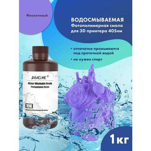 Найти - Водосмываемая фотополимерная смола JAMG HE Water Washable 10K UV Resin (365-405 nm) для 3D принтеров Anycubic Photon, Mono / Elegoo Mars, Saturn. 1л Фиолетовый