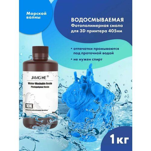 Найти - Водосмываемая фотополимерная смола JAMG HE Water Washable 10K UV Resin (365-405 nm) для 3D принтеров Anycubic Photon, Mono / Elegoo Mars, Saturn. 1л Голубая вода