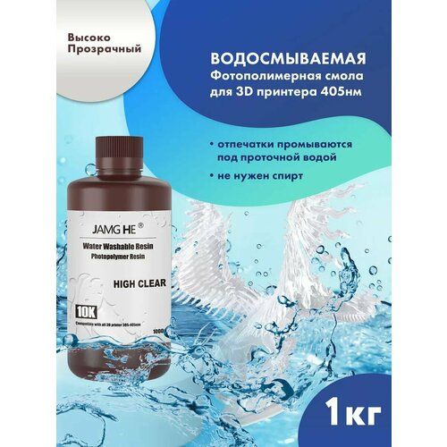 Найти - Водосмываемая фотополимерная смола JAMG HE Water Washable 10K UV Resin (365-405 nm) для 3D принтеров Anycubic Photon, Mono / Elegoo Mars, Saturn. 1л Повышенная прозрачность