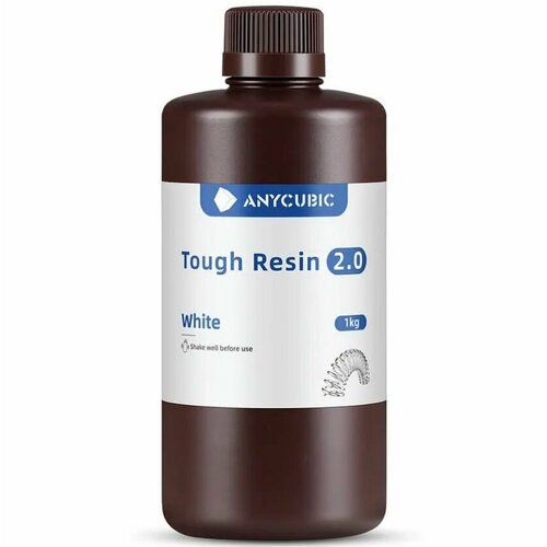 Фотополимерная смола Anycubic Flexible Tough Resin 2.0 белого цвета полностью обновлена с точки зрения прочности на изгиб. Она демонстрирует повышенную жесткость, что делает ее устойчивой к разломам при печати миниатюрных деталей и тонких моделей.