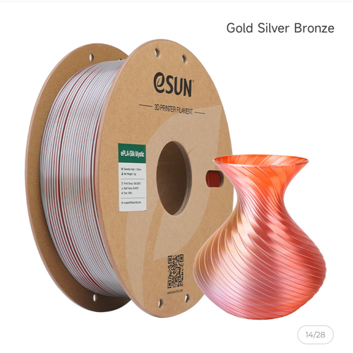 Филамент Esun SILK PLA+ имеет серебристый и золотистый цвета. Это позволяет создавать яркие и насыщенные цвета в 3D-печати.