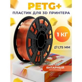 Найти - PETG+ пластик LIDER-3D для 3D принтера 1.75 мм, Янтарный (прозрачный), 1 кг