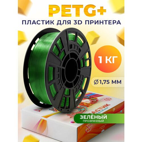 Найти - PETG+ пластик LIDER-3D для 3D принтера 1.75 мм, Зелёный (прозрачный), 1 кг