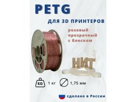 Пластик для 3д печати "НИТ", Petg розовый прозрачный с блеском (0032) 1кг 102424544359