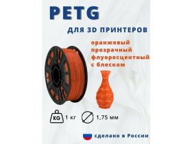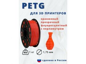 Пластик для 3д печати "НИТ", Petg оранжевый прозрачный флуоресцентный с блеском (0028) 1кг 102424492773