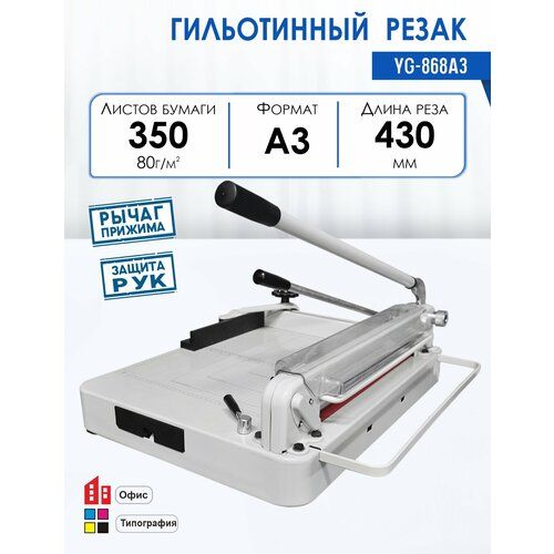 Найти - Резак гильотинный YG-868A3, длина реза 430 мм, до 350 листов за раз
