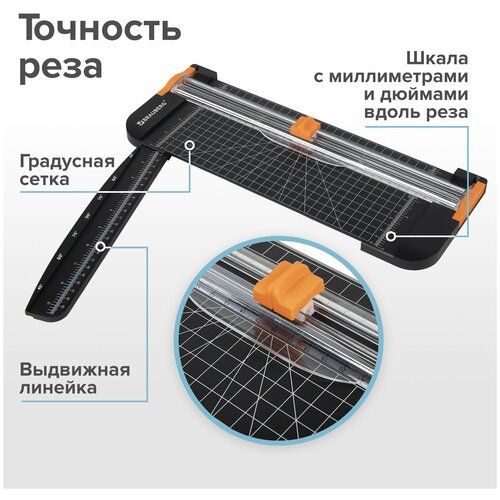 Роликовый резак для бумаги BRAUBERG может использоваться в офисах, учебных заведениях, фотомастерских для работы с документами и фотографиями, а также дома для хобби и творчества. Позволяет одновременно разрезать до 12 бумажных листов формата А4.