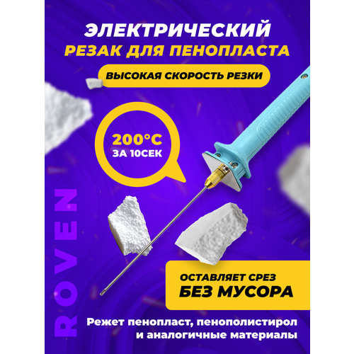 Портативный резак для пенопласта Roven, электрический делает качественный срез под действием нагрева без мусора и рваных торцов. Резак для пенопласта электрический будет полезет в строительстве, творчестве, изготовлении рекламных объектов и наглядных макетов. Электрорезак имеет эргономичную форму ручки с нескользящим покрытием и со стальным лезвием. В нагретом состоянии может работать до 30 минут, после чего изделие должно охладиться в течение 10 минут. Длина режущей части достигает 10 см, поэтому можно подрезать достаточно длинные куски пенопласта и других аналогичных материалов.