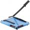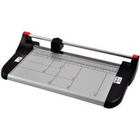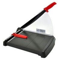 Оснащен безопасным лезвием, регулируемым упором и автоматическим прижимом для бумаг. Рукоятка анатомической формы препятствует соскальзыванию руки. Прочное металлическое основание. Удобная разметка рабочей поверхности и регулируемый упор позволяют точно наметить линию реза. Длина реза составляет 300 мм. Также имеются уголки для форматов А4, B5, А5, B6, B7. Резиновые ножки предотвращают скольжение по рабочей поверхности во время эксплуатации. Размер - 63х280х510 мм. Вес - 2.6 кг.