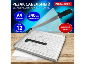 Резак для бумаги А4 сабельный BRAUBERG, 12 листов, металлическое основание, защитный экран, 532985 4414222466