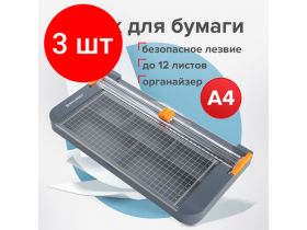 Комплект 3 шт, Резак роликовый с органайзером BRAUBERG SPECIAL, до 12 л, длина реза 310 мм, А4, 532329 102709195484
