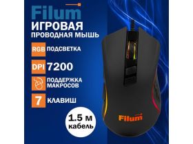 Мышь проводная Filum FL-GM20 игровая 7D, оптическая, подсветка RGB, 7 кнопок, чёрный 103741824376