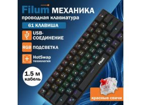 Клавиатура Filum FL-GKBM10 игровая механическая, USB, компактная 61 клавиш, подсветка, чёрный 103741868848