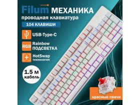 Клавиатура Filum FL-GKBM25 игровая механическая, USB, 104 клавиши, подсветка, белый 103741866991